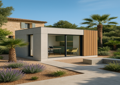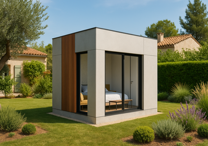 Avec ses 10,8 m² extérieurs (9 m² intérieurs), le module Y-TRA offre un espace confortable pour créer une chambre, un bureau de télétravail ou un local professionnel. Construit dans nos ateliers , il est livré prêt à vivre et installé, chez vous, en seulement