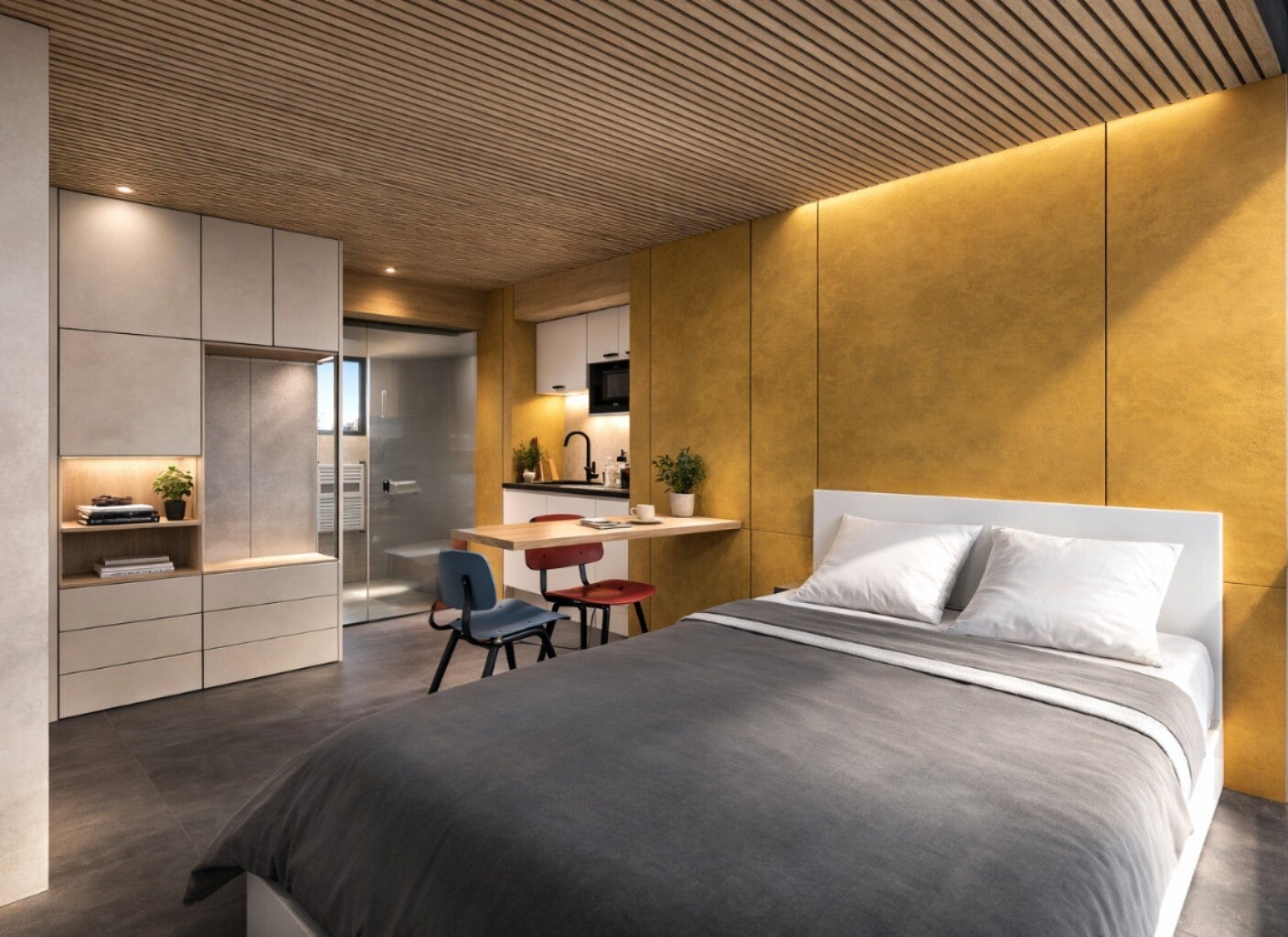 Entièrement équipée, fabriquée localement et livrée prête à poser, elle offre le confort d’une vraie pièce supplémentaire sans travaux ni permis de construire. Nos modules combinent qualité artisanale, design contemporain et rapidité d’installation pour créer un espace durable, élégant et fonctionnel.