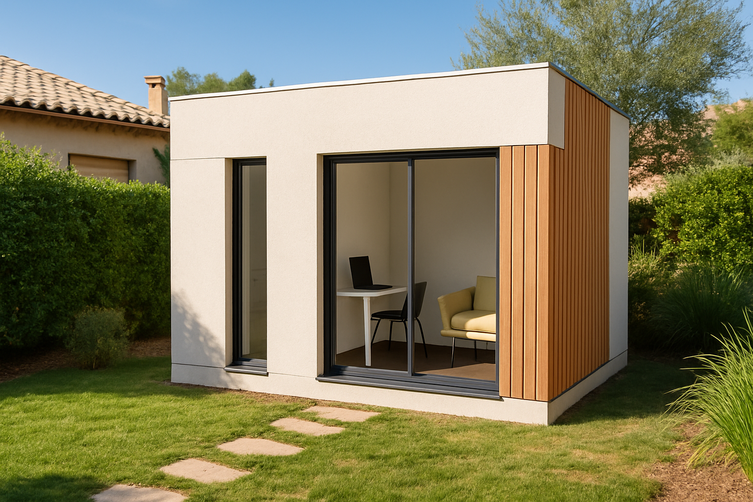 Bureau de jardin indépendant ou en extension, installé en un jour et sans travaux !